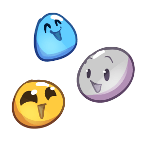 But Blue Pebble and Yellow pebble had a wonderful time playing! While they were playing, a gray pebble appeared. He was very happy, too! Now the game became much nicer.